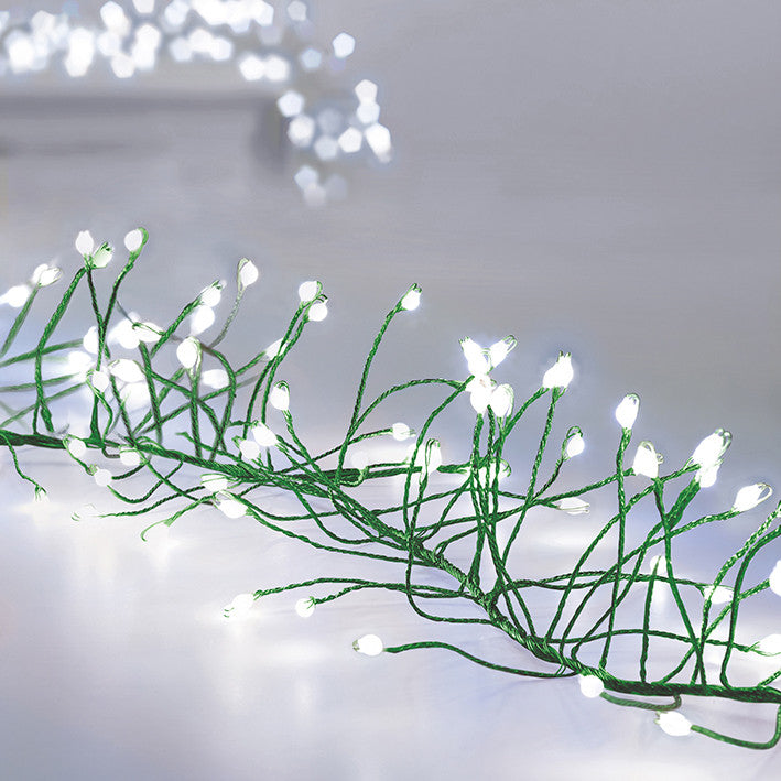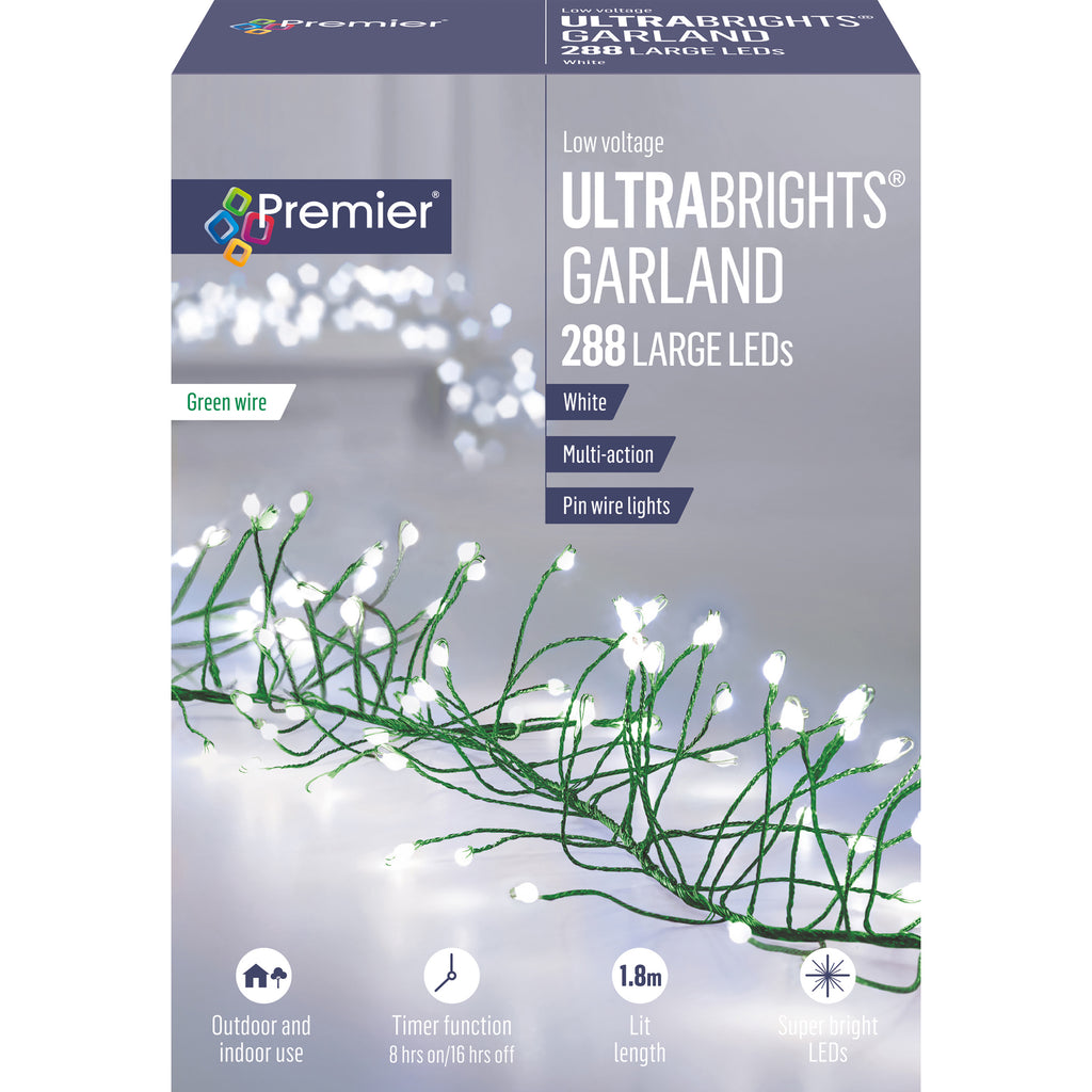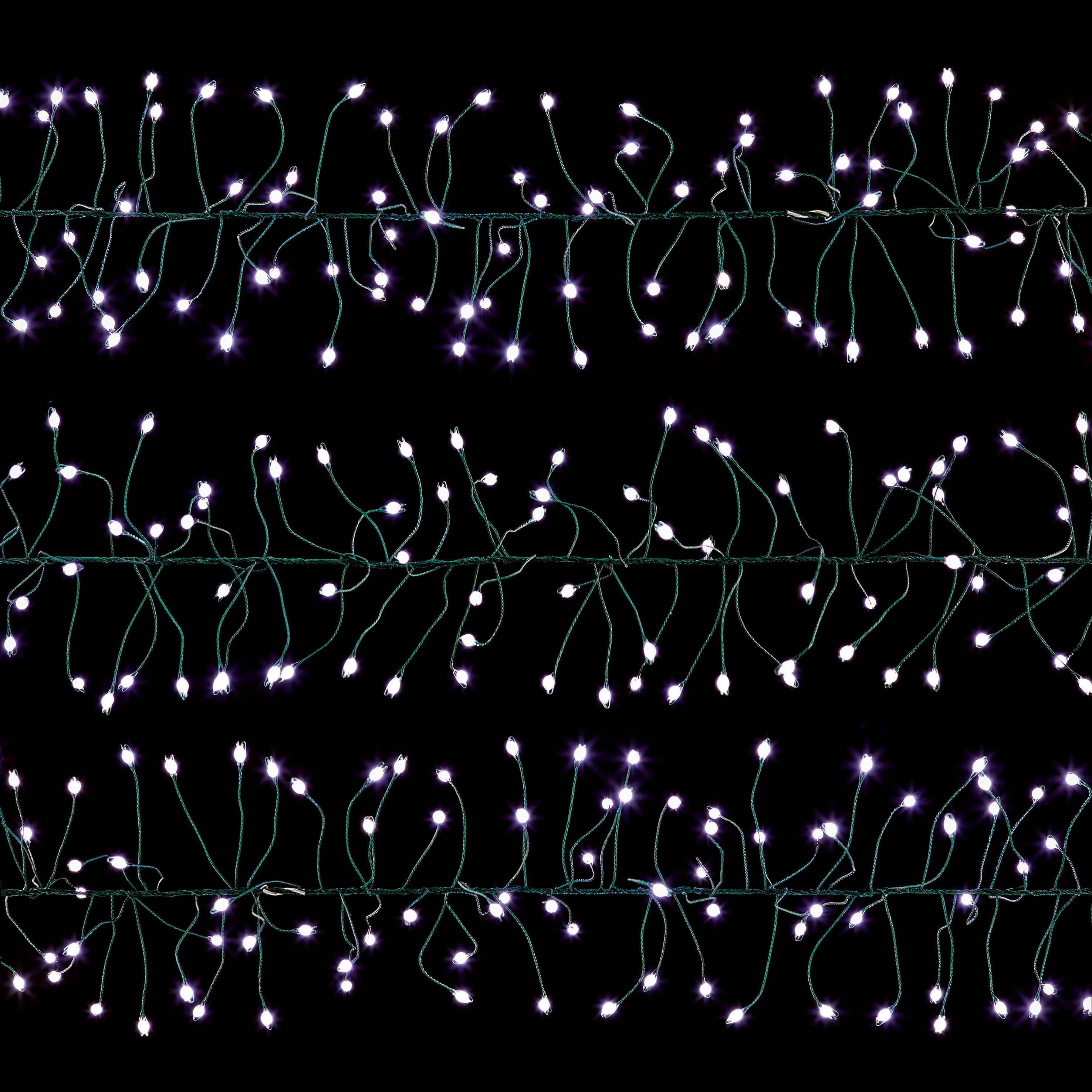 Transform your holiday season into a radiant wonderland with our 288 Multi Action LED UltraBright Garland Lights. These dazzling white LED lights, intertwined with a green cable, infuse your surroundings with a captivating and festive glow, elevating the magic of your Christmas decor both indoors and outdoors.