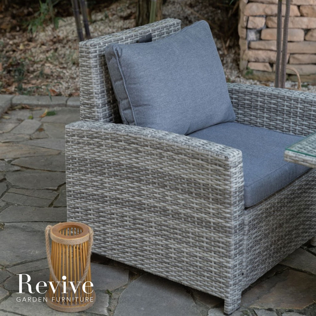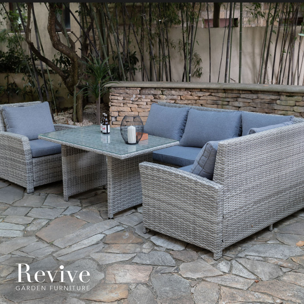 All cushions are easy to clean and made exclusively of the highest quality UV-protected & weatherproof materials. There is little to no maintenance on this set making it the perfect addition to your home! It comes with a 5-Year Structural Guarantee but please note the glass is not covered by the guarantee. There is a minimal, straightforward assembly required.