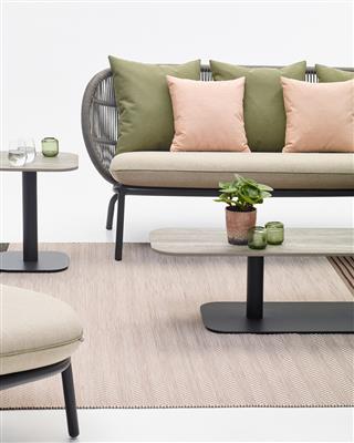 Vincent Sheppard all weather furniture. A beautiful sofa made of powder coated aluminium with polypropylene rope. Sunbrella cushions. An outdoor piece to be treasured now and forever.