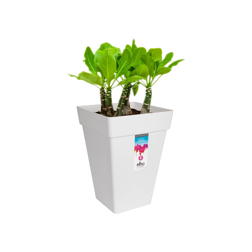 As a green welcome at the door or a beautiful combination with the planter on your balcony; you will make a firm statement with this square, tall planter by elho anywhere. From now on you will be happy when it rains, because the built-in reservoir collects all the surplus water and you will not have to get busy with your watering can so often. You can enjoy life outside and your flowerpot will do the rest.