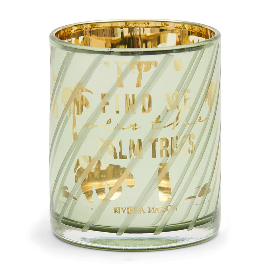 Feel summer reflecting through The green-coloured Palm Tree Votive. When a tealight lights up the glass, the gold stripes carved into the glass create a distinctive and radiant aura.