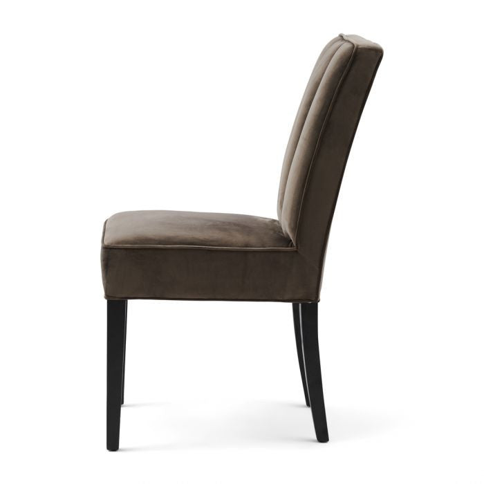 This dining chair from the New Jersey Velvet III series is a modern variety of the popular Cape Breton by Rivièra Maison. Soft velvet and tufted, on sturdy rubberwood legs. Beautiful as well as sustainable, and available in three colours.